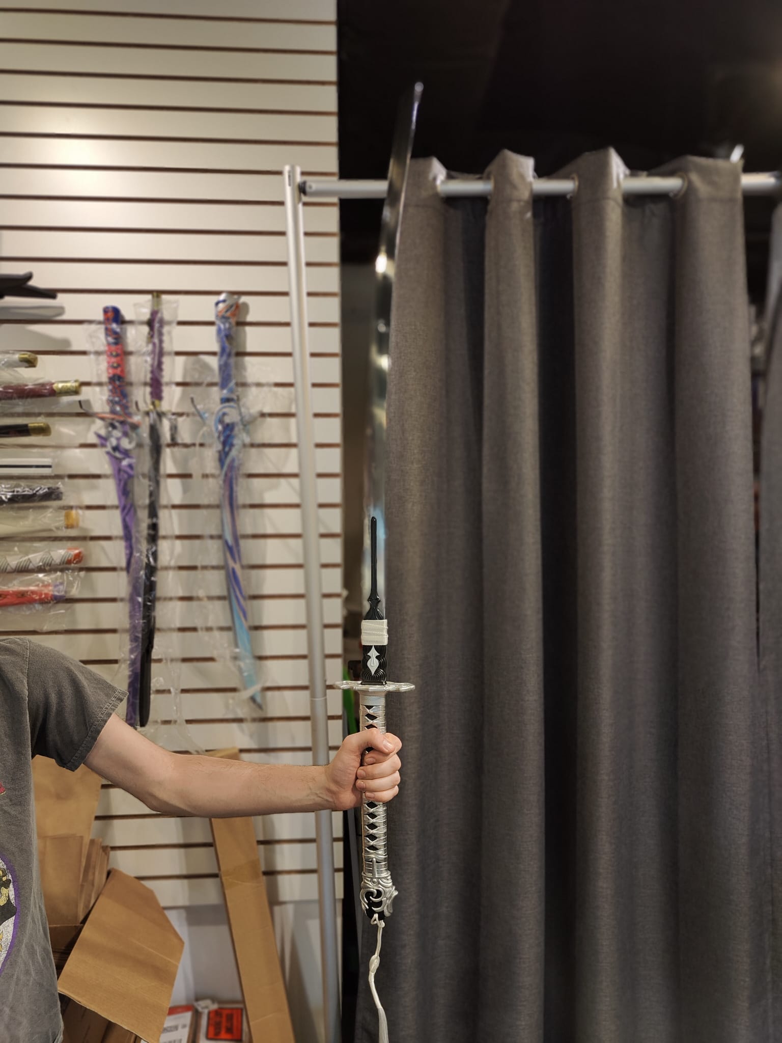 All swords are made of metal but are dull as they are only for decoration purposes!